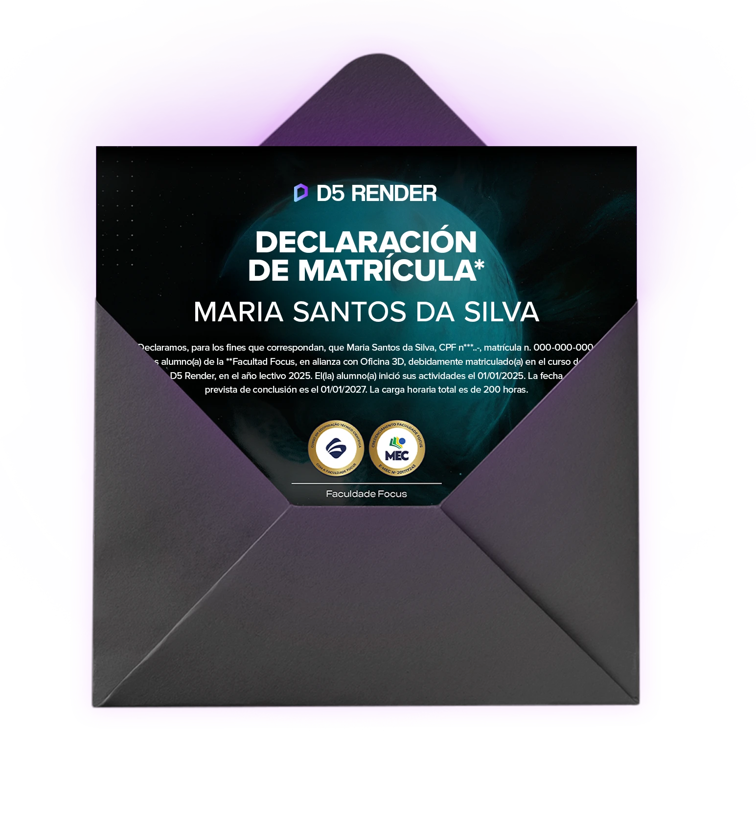 Como alumno de D5 Render, vas a poder usar tu constancia de matrícula para obtener la licencia estudiantil del programa durante todo el tiempo que accedas al entrenamiento.